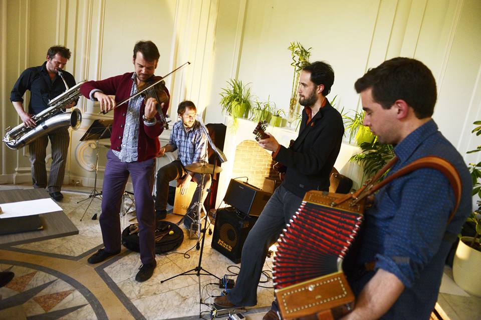 Francois  Lourtie, sax basse et compositions – Jonathan  De Neck, accordéon diatonique – Benjamin  Sauzereau, guitare – Benoit  Leseure, violon – Jérôme  Klein, percutions